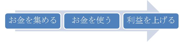 ①お金を集める → ②そのお金で何かを買う → ③利益を上げる というステップを踏む。