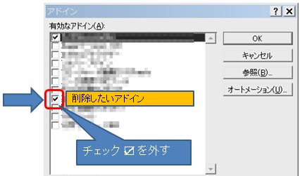 Excelのアドインの削除なんてめったにやらないので苦労しました。